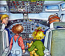 �Durant el viatge, com que s'han portat molt b�, l'hostessa s'enduu la Berta i un altre nen a veure la cabina de pilotatge, on hi ha el pilot i el copilot. D�u n'hi do, quants llumets i pantalletes!�La Berta marxa de vacances i per primera vegada, ha d'agafar un avi�. Est� una mica nerviosa, per� per sort els pares s�n amb ella. A l'aeroport, hi ha un munt de coses per veure i per fer: treure els bitllets, facturar les maletes, passar pel detector de metalls... L'espera un viatge ple de sorpreses!